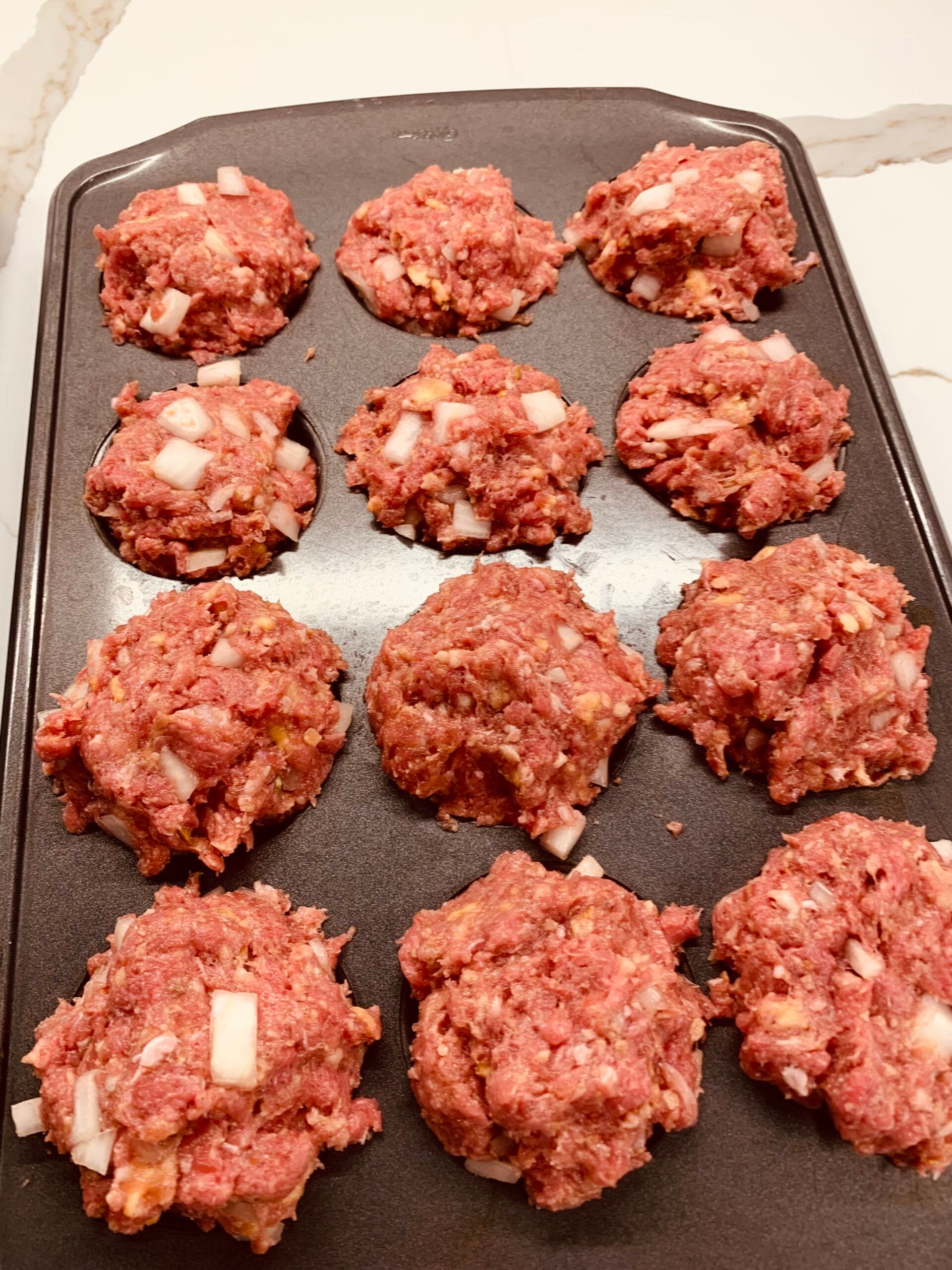 - Divide the meatloaf mix to fill the 12 muffin pan wells.
